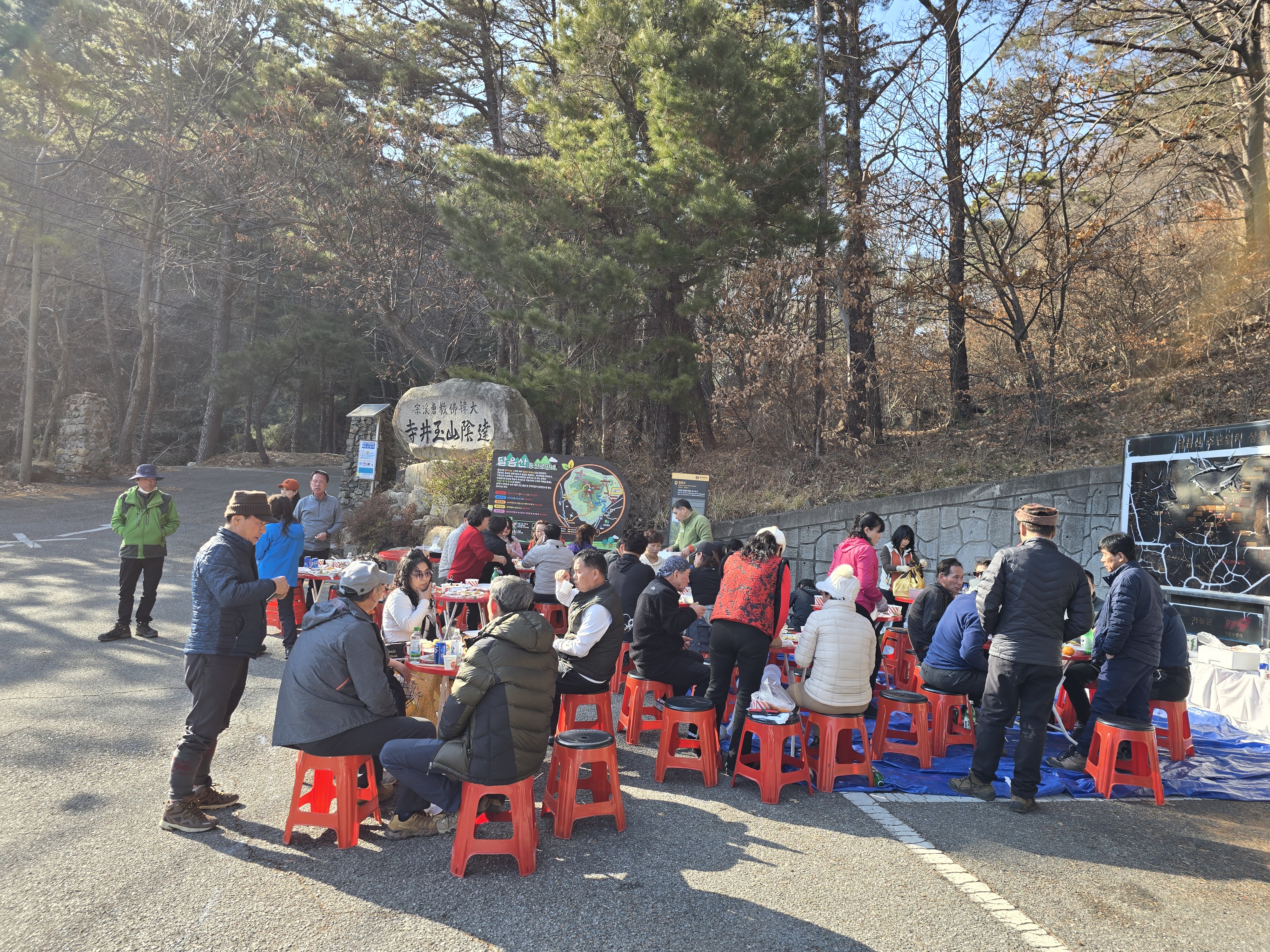 주차장 한켠에서 열심히 하산주, 음식을 먹고 즐거운 산행을 마칩니다.